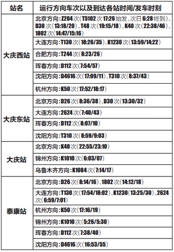 调整后,大庆地区各站的站停旅客列车也将增多。各站具体站停情况分别为: