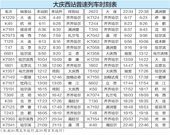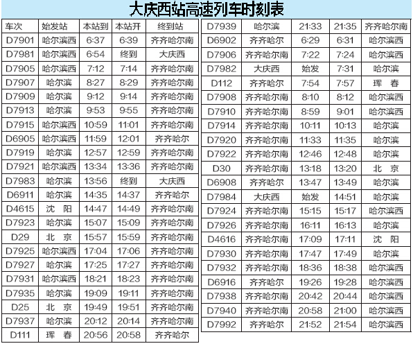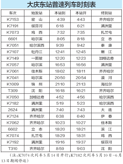 “5·15”大庆各站全新旅客时刻表出炉