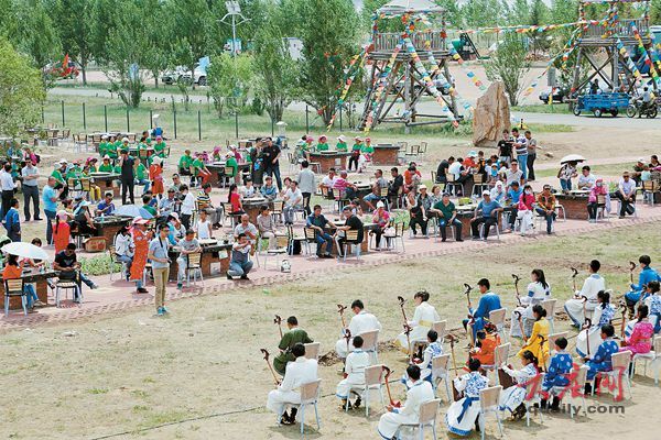 这边,游客们乐在其中,那边,好客的蒙古族朋友拉起马头琴,伴着悠扬的马头琴声,游客们品尝着丰收的喜悦。