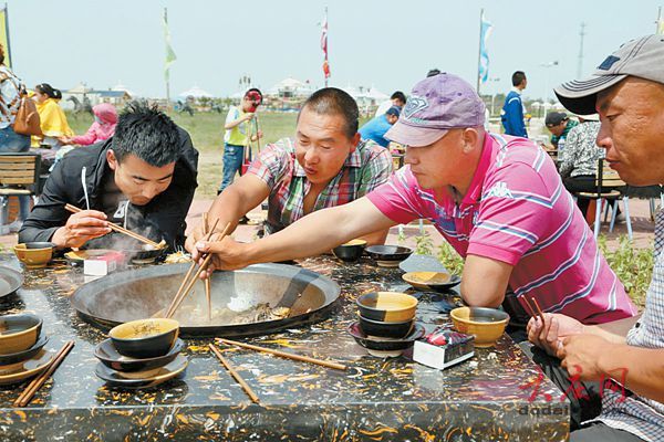 原标题:阿木塔“百口大锅炖湖鱼”香引八方客