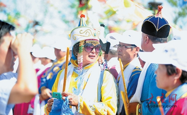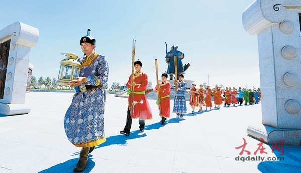 抚摸先祖的敖包祈求平安。