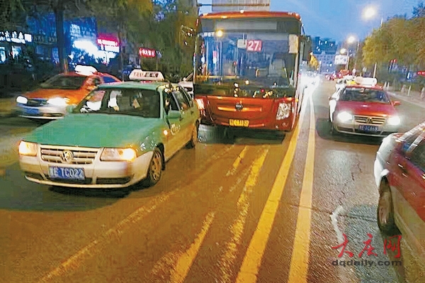 出租突然变道惹祸 公交“吻”上出租车一车乘客被迫倒车