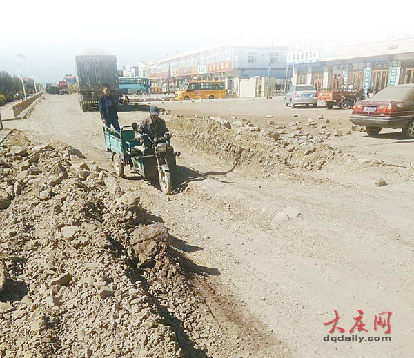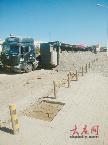 兴城镇地处大同、肇州、大庆市区地界,交通四通八达,记者采访当天,外环路上一辆运载石头的大车,由于路况不好,侧翻到沟里。城管部门的工作人员说,他们最近一段时间加大看管力度,由于外环路破损严重,这些石料车选择半夜从街里走,眼看着路面一天天塌陷。