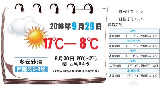 未来三天大庆气温将有小幅回升 30日最高温可达20℃
