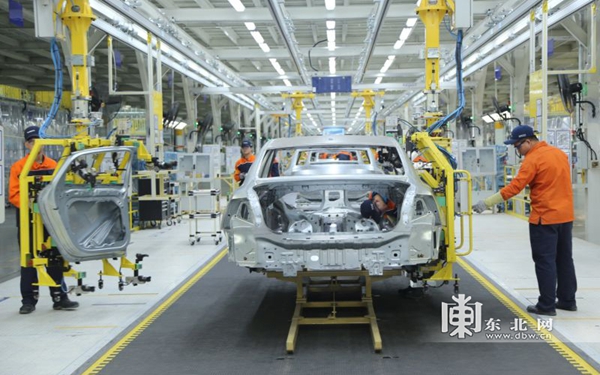 大庆沃尔沃汽车公司汽车车身拼装生产线。东北网记者王忠岩摄