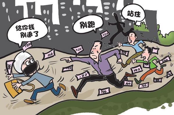 为了尽快脱身,他连钱也不要了,他将抢得的钱撒向空中,他先仍50元面值的钱,作为试探,见没有效果,又仍100元面值的钱,然而,令他感到崩溃的是,他所做的一切,都无法阻止后面的人追赶。