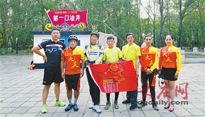 “以前听他讲故事,仿佛在随着他游览大庆。如今,我们来亲眼看看铁人的故乡。”今年年初,江苏油田单车俱乐部的6名车友来到大庆,参观了王进喜纪念馆、时代广场、萨55井,还登上了电视塔,纵览大庆风光。
