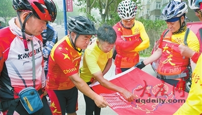 说起这位“环华自行车铁人”与大庆的缘分,最早要从2012年开始。当时,正开展第三届环华自行车赛的黄仁义途经大庆,本没有逗留计划。可得知如此瘦弱的人却卖掉房子骑行全国,只为弘扬自行车运动,同时也是代表华人参加法国怕不怕不间断骑行赛的第一人,这种有条件要骑、没条件创造条件也要骑的精神感染了“大猛”。