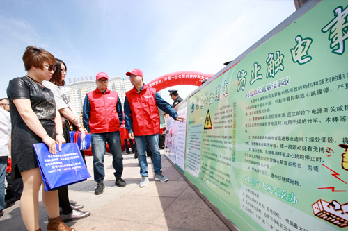 东北网5月17日讯(张新民 记者郎艾迪)17日,国家电网大庆供电公司组织党员服务队深入到大庆市各大广场、居民小区等地方开展保护电力设施宣传活动,公司副总经理赵玉岩等领导及各相关部门和单位负责人等深入现场开展宣传活动。本次活动由公司保卫部统一组织协调。